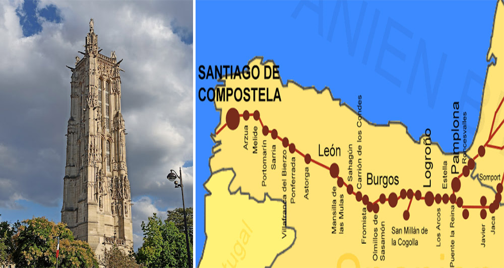 Las peregrinaciones a Santiago comenzaron en el siglo IX, a raíz de que la estrella radiante señalara el lugar de reposo de los restos del apóstol. Entre los peregrinos ilustres estuvo San Francisco de Asís, que hizo su camino hasta la tumba en 1214. A lo largo de los siglos siguientes al siglo IX fueron estableciéndose las rutas jacobeas, nacionales e internacionales, siendo la más notoria la ruta francesa, cuyo punto de reunión de peregrinos fue la famosa e histórica Tour Saint Jacques, (Torre de Santiago) en el París medieval y que pervive hasta nuestros días. Esa torre llegó a ser desde el siglo X, punto de reunión de peregrinos de varias nacionalidades, que confluían en París desde cuatro vías del norte de Europa. Desde París bajaban hasta Saint Jean-Pied-de-Port para atravesar los Pirineos por el paso del Somport a Roncesvalles, pasando después por los santuarios de Jaca, Pamplona, Logroño, Santo Domingo de la Calzada, Burgos, León, Astorga y siempre hacia el oeste hasta Santiago. Tengamos en cuenta que los peregrinos eran fácil objeto de robo y violencia; los amigos de lo ajeno siempre han estado cerca de donde podían obtener gran beneficio. Por eso, estos peregrinos viajaban en grandes grupos, para poder defenderse.