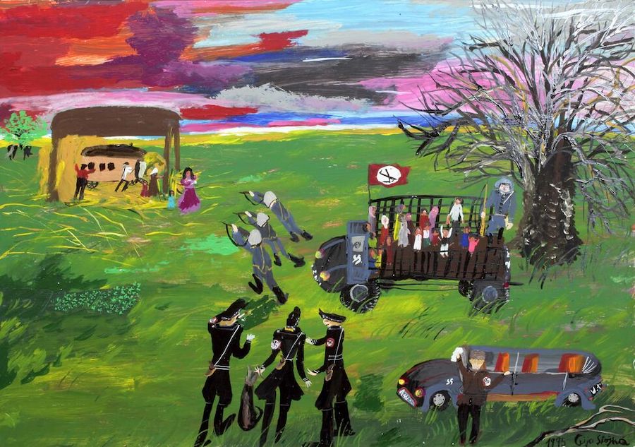 Ceija lived a post-traumatic silence for four decades. In the nineties of the last century, through writings, drawings and paintings, he recounted, especially through colors and symbols, his happy life before Nazism, the hunting of his family and his clan, the Lovara, of whom only five of the more than two hundred and fifty survived before the Porrajmos (holocaust).