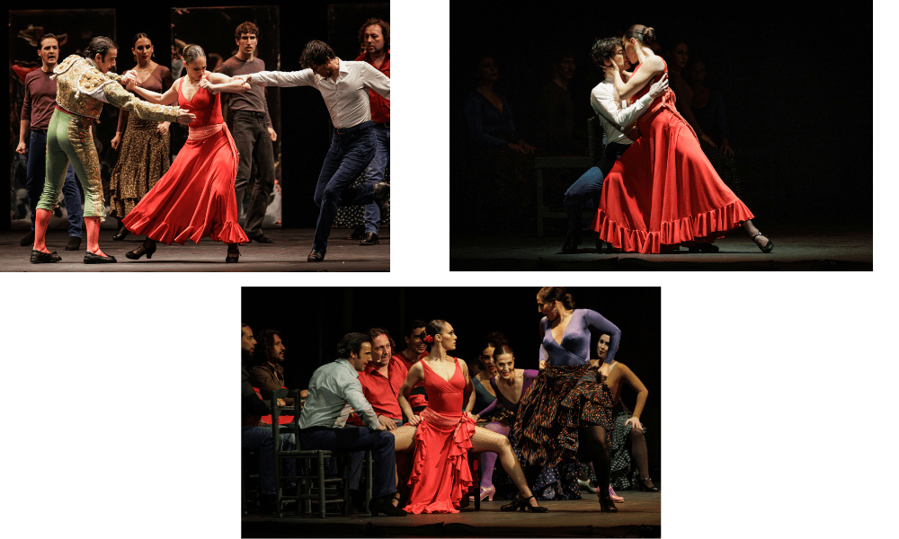 La misma coreografía creada por el maestro y filmada por Carlos Saura. Una compañía de baile que sigue siendo uno de los puntales de la danza española y flamenca. Sincronización y, armonía compositiva en esta Carmen teatralizada en perfecta coordinación con las músicas, grabadas las operísticas, en vivo las flamencas, con la danza y el excelente diseño de iluminación.