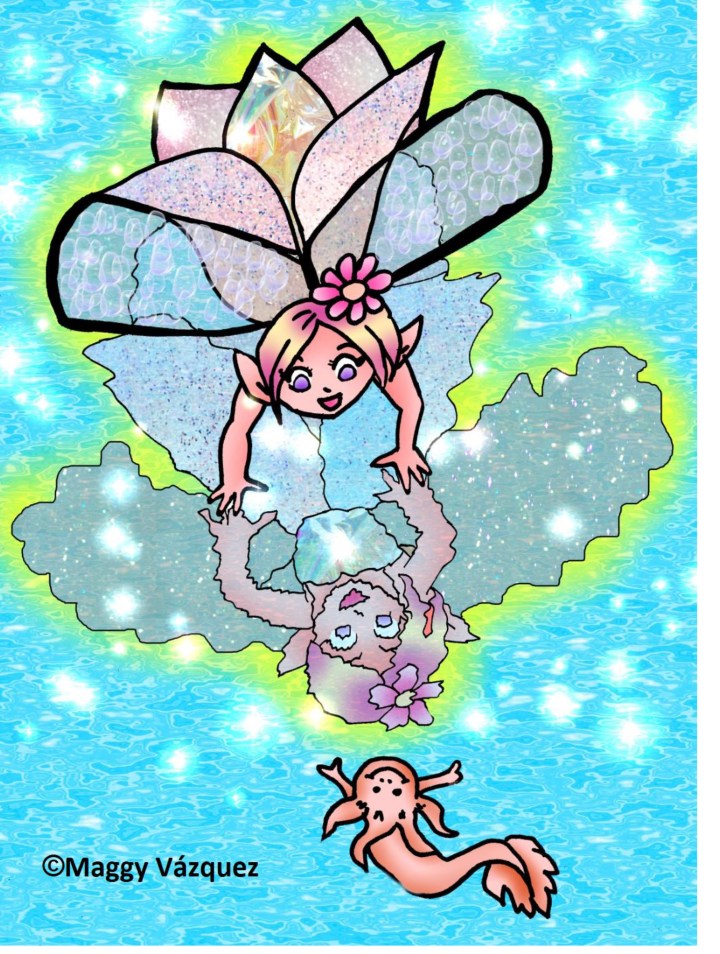 Once again, the balance of the beautiful forest was strengthened. Now the beautiful fairy of the crystalline river left a small pink axolotl in it to keep her alert of any danger.