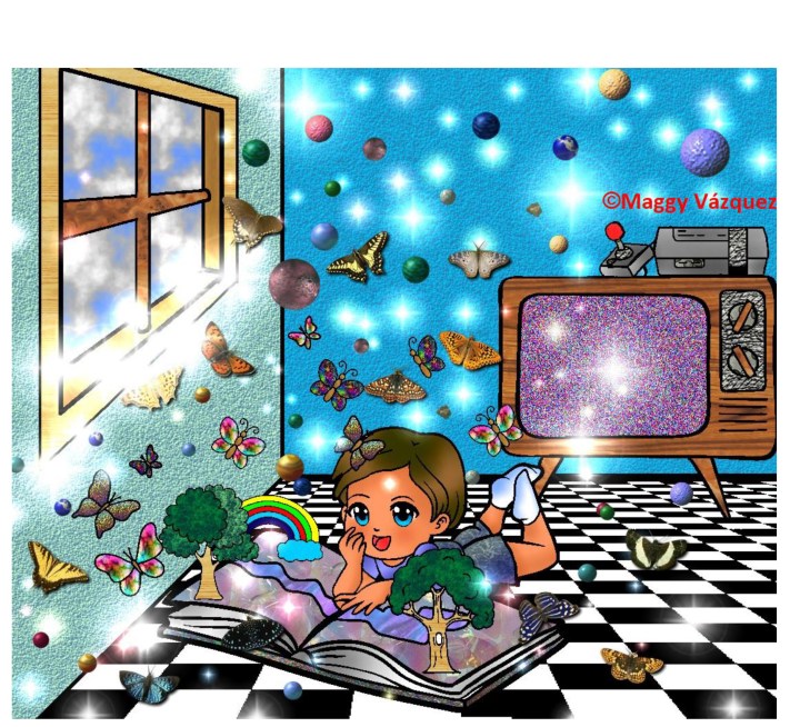 Quedo impactado, exclamo ¡Recontrachispas! y pensó ¿estaré soñando? Entonces trato de leer el título del libro y… Agüitas saltarinas aquel libro ante sus ojos ¡cobraba vida! Aquellas hojas antiguas recobraban su color y su vida – ¡Genial! – “Era un libro mágico” de repente salieron estrellitas tintineantes, de aquí para allá, polvitos de mil colores, maripositas blancas y amarillas que volaban por todas partes, ¡Espectacular!
