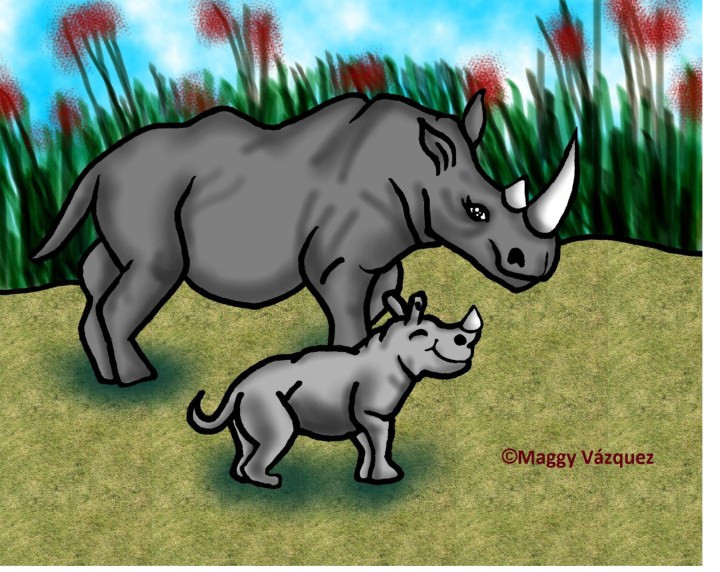 En la cálida sabana donde existe gran vegetación con sus zonas boscosas, vivía un rinoceronte que, aunque pequeño se le notaba el carácter determinante que tenía, su papá llamado Roko salía todas las mañanas con él.