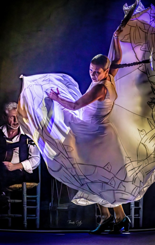 Luces y sombras para resaltar la silueta del bailaor; sonidos y silencios que el artista teje en su baile, en su taconeo, en su entrega total al arte de Terpsícore, arte que recibió al nacer como un don. Y luego salió a escena Lucía Campillo.