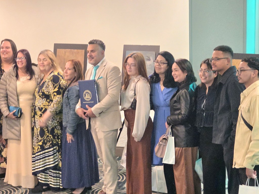 On behalf of the author who could not attend due to personal reasons, Diego Muñoz (President of the Ecuadorian American Chamber of Commerce of NEW JERSEY) received his recognition from Jaqueline Mercado Quiles (Vice Mayor of NEWARK).