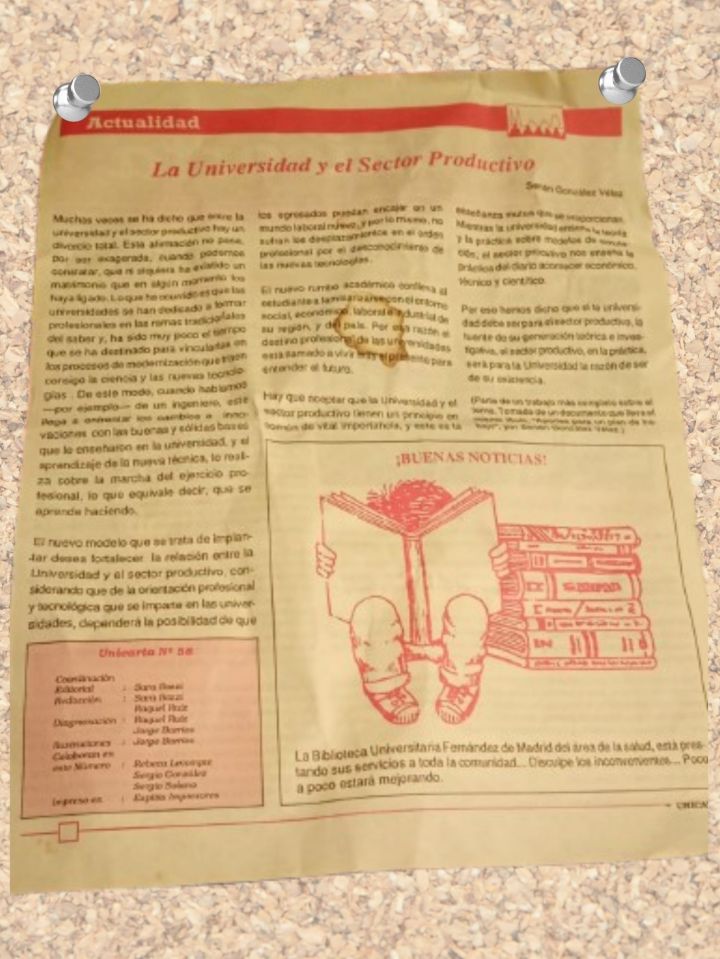 In 1992, I presented a project to the rector of the University of Cartagena, Dr. Carlos Villalba Bustillo, now deceased, which aimed to have the University of Cartagena create its own source of economic self-sufficiency, or at least contribute some income derived from each faculty in their respective disciplines and specialties, which would also aid in their technological development and break the paradigm that businesses and their entrepreneurs are exploiters of workers. My desire was to foster and build labor trust with the entrepreneur. I do not know if that program I initiated exists today, or if it was discarded.