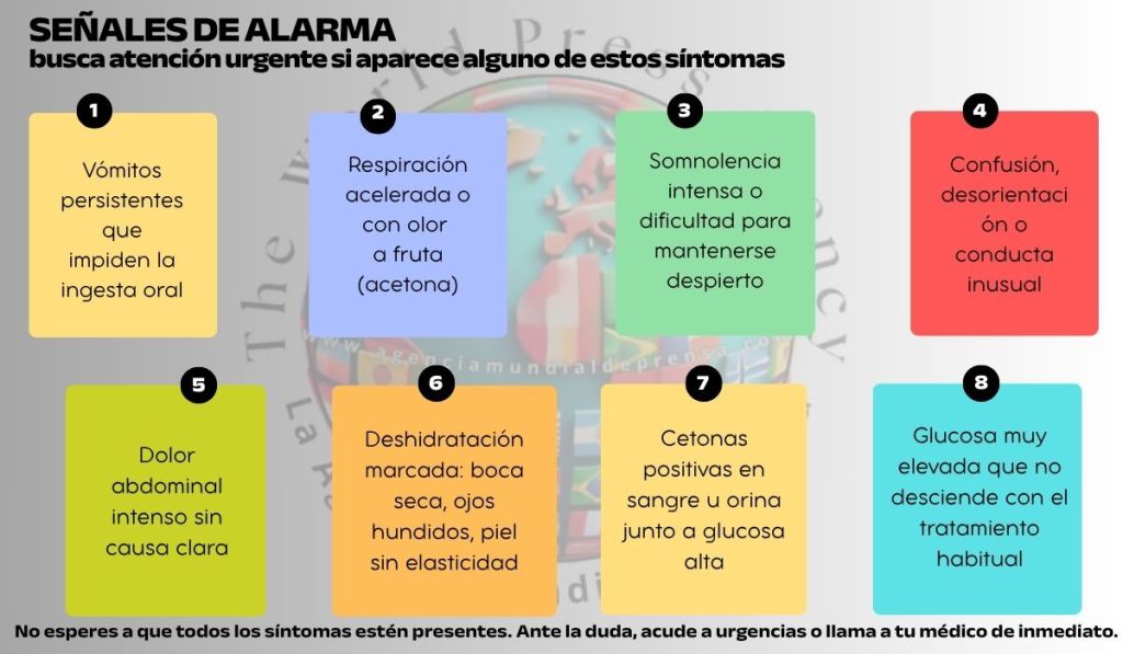 Cuando el cuadro progresa, el cuerpo ya no puede compensarlo: aparecen náuseas, vómitos, dolor abdominal, respiración acelerada, somnolencia y confusión. Esos síntomas ya no son compatibles con el manejo en casa. Obligan a descartar de inmediato una emergencia metabólica.