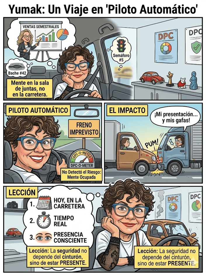 Asimismo, nos enfrentamos al Efecto de la Congestión: El exceso de estímulos visuales y auditivos genera una «ceguera por desatención». El cerebro, para no colapsar, filtra información que considera «irrelevante», pero en ese filtrado solemos omitir señales preventivas críticas. La prevención no es falta de accidentes; es la presencia de una capacidad cognitiva activa para anticiparlos.